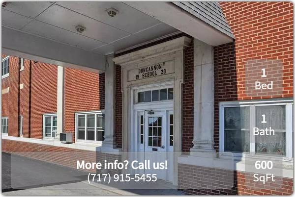 Description: Historic Schoolhouse Apartments features one and two bedroom apartments in Duncannon, PA. Surrounded by the view of the Appalachian Mountain Range, the community is within walking distance to many town conveniences.