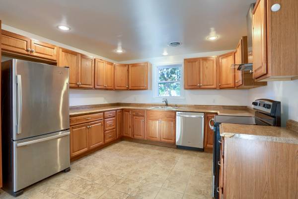 The 2 sty home newly painted and carpeting in 2nd fl. 2 or 3 bedrooms, (you must walk thru 1 bedroom to get to the bathroom) dining rm., kitchen includes gas range, refrigerator, dishwasher, 1st fl. laundry rm. with hookups for washer/dryer, 1.5 baths, large deck off kitchen area and 2nd fl. bedroom, off street parking. Tenant responsible for lawn care, grass cutting, weeding and snow removal.