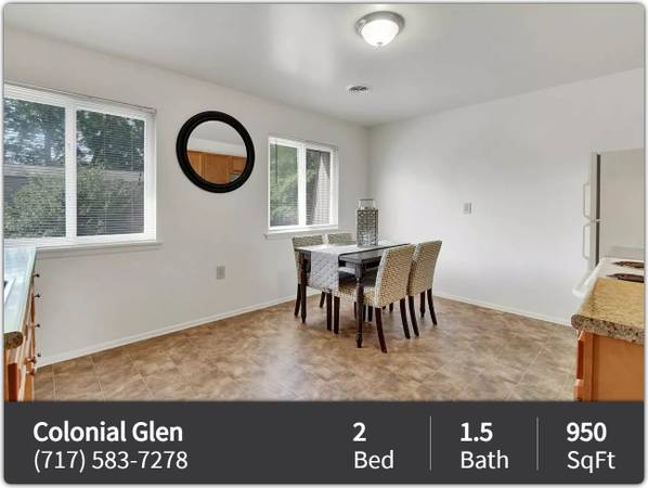 Description: Colonial Glen, where quality and comfort meet! We offer a variety of apartment homes from 950 to 1050 square feet of living space. You will find yourself ideally situated close to I-81 and I-83 with an easy commute to Hershey Park and Medical Center!