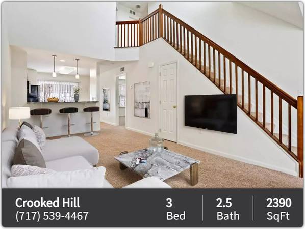 Crooked Hill is a community that everyone can appreciate. We're close to nature and close to the city. If you love biking, walking or relaxing, choose a townhome at Crooked Hill and enjoy the natural beauty of the countryside. If you love movies, sports, music and dining out, choose a townhome at Crooked Hill and appreciate what downtown Harrisburg has to offer including the symphony, jazz, museums, baseball, soccer and entertainment…all minutes away! If you love to entertain, relax and live in beautiful surroundings, choose a townhome at Crooked Hill with plenty of space and the fine details that truly make a home. Please feel free to drive by our beautiful community! The property is located on Vesta Lane off of Crooked Hill Road, and our leasing office is just a few minutes away at 4112A Beechwood Lane, Harrisburg, PA. Call us at today.