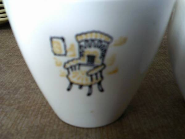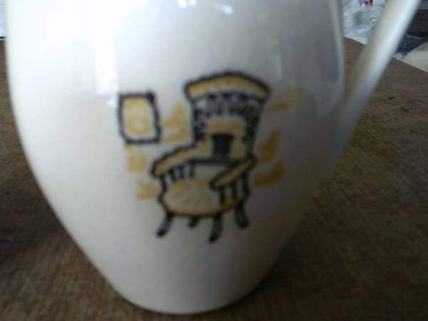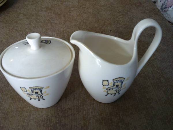 This is for a very unique sugar bowl and creamer with a yellow chair as the emblem. These were made in the USA. Please see the attached pictures. Thanks.