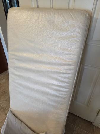 The Sealy Soybean Plush Foam Crib Mattress offers a comfortable place for your baby to sleep. It has a thick, high-density, soybean, foam core that offers firm support. Its waterproof, lock-stitched binding prevents wetness from seeping inside the mattress. This baby crib mattress has air pockets for breathability. It fits cribs and toddler bed frames with square corners perfectly. This hypoallergenic crib mattress has a cotton-based, protective wrap for added coziness. Its golden, fabric cover not only wears well, but also complements most nurseries. This mattress is fire resistant.