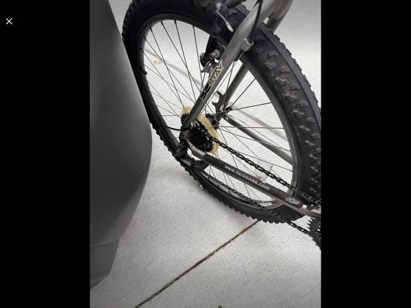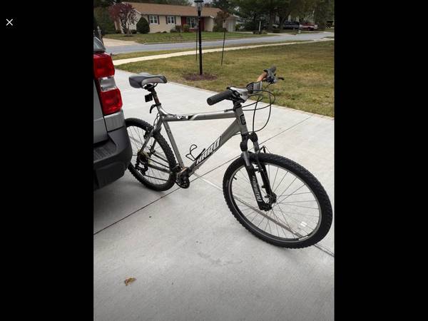 Mt. Bike is in ready to ride condition. 21”-55 cm Aluminum frame, 26” quik release alum whls . Suspension forks. Cash Only