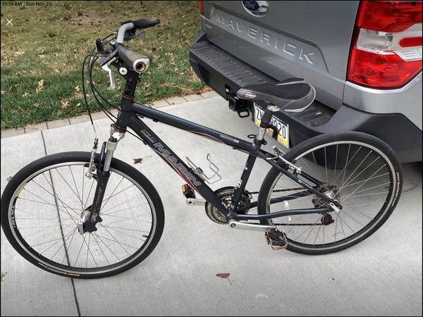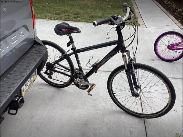 Mt.-Hybrid bike is in ready to ride condition. 13”-34 cm alloy frame. 26” quik release alum whls, Suspension forks. Cash only