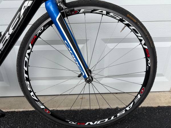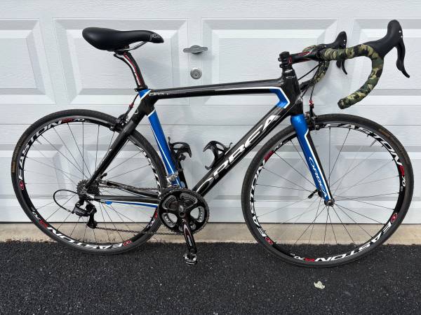 Orbea Opal medium frame road bike with Easton wheels and Campagnola Veloce derailer.