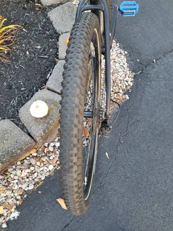 2020 Giant Talon 1, 10-speed hardtail mountain bike. Size large (height 69-74"), aluminum frame, RockShox Judy 100mm front suspension, Shimano Deore drivetrain, 32T chainring, 11-42t cassette, 29" wheels, Tektro hydraulic disc brakes. New tires, chain, and saddle in spring of 2025. Great for someone just getting into mountain biking, as well as for around town and rail trails. It does need either a new rear hub or wheel ($50-100 cost, already deducted from asking price). Minor cosmetic damage.