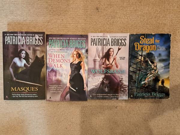4 Patricia Briggs Books. Hard to find Arlon/Sianim complete series. $8 cash. Smoke and pet free home. Pick up in the Rutherford Heights area of Harrisburg, PA. No shipping.
