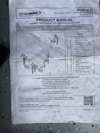 model name / number:BikeWing-2 Tilting Hitch V-rack