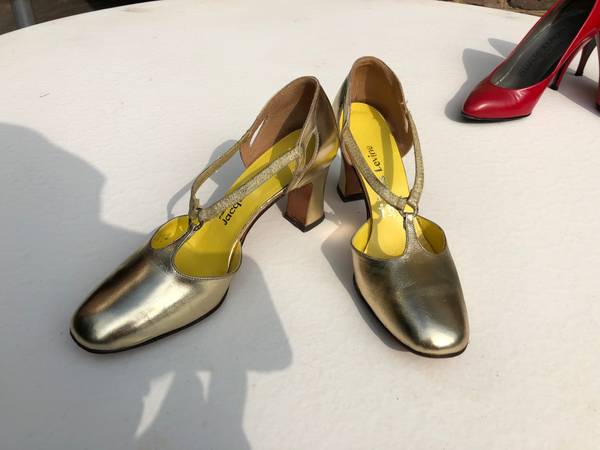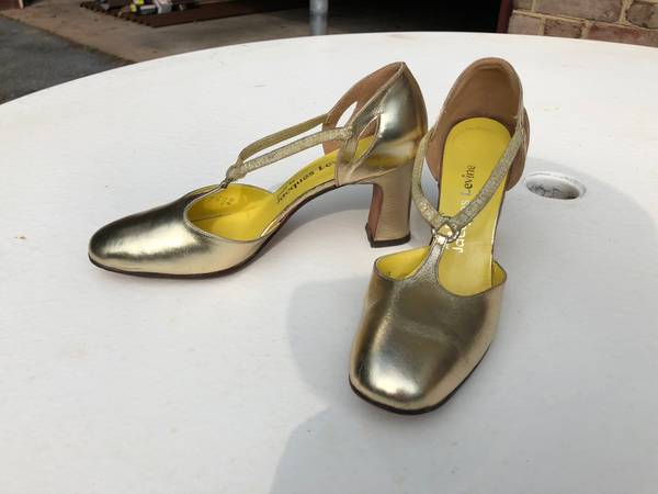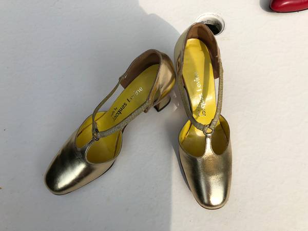 - Jacques Levine, made in Spain (gold metallic leather), size 5 M