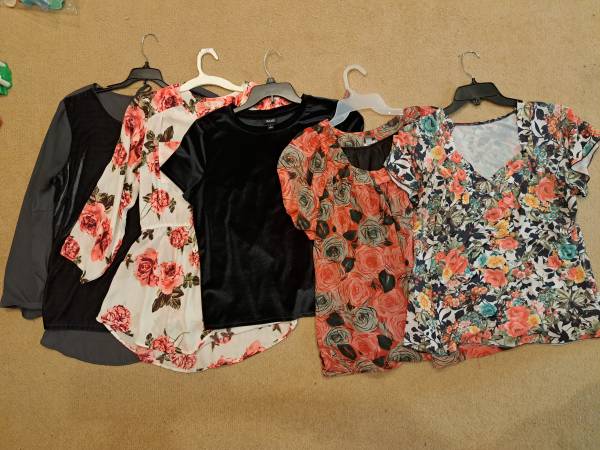Lot of 5 Women's Tops Size Large. $15 cash. Pet and smoke free home. Pick up in the Rutherford Heights area of Harrisburg, PA. No shipping.