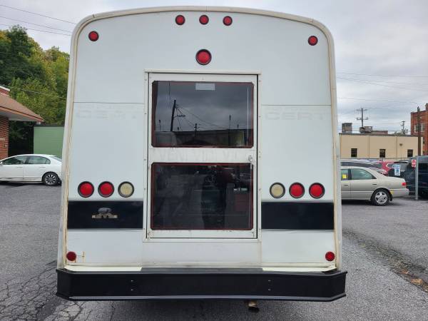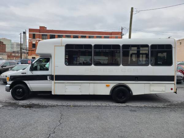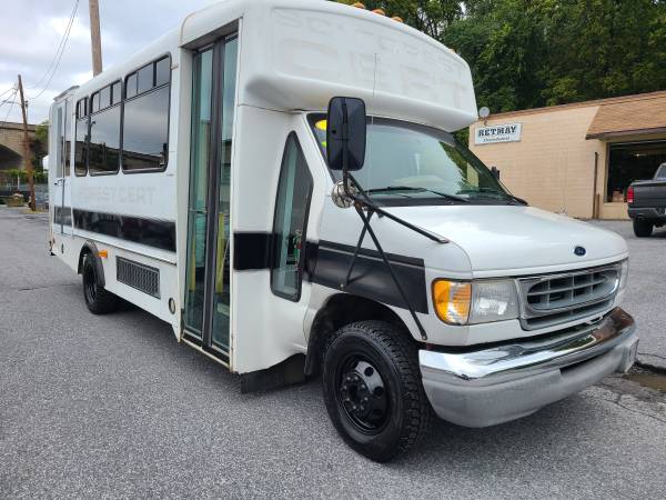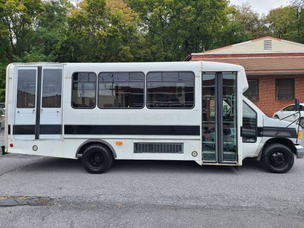 2001 Ford Econoline E-450 with only 38,000 miles. This bus comes with a 6.8 v10 cylinder motor with an automatic transmission which works flawlessly and it drives great. This van has new tires, good brakes, 2 new batteries, and is inspected til 10/26. This van has manual locks, mirrors, windows, manual seats, cold ac and heat, am/fm, 16 inch wheels, vinyl seats, seats 21 passangers, much more. Nice and clean bus ready for service. Not sure if rear ramp for handicap works so is being sold as not working .