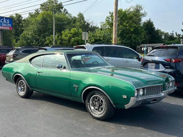 Very nice 69 cutlass. Bucket seats with floor console. Black interior in very good shape for its age. PA inspected recently. Tires are fairly new. Runs and drives excellent. Disc brake upgrade with many other new parts. Ready for cruising. Car was equipped with power antenna. Power door locks. Cruise control. Unfortunately those systems are not working. Does have factory power windows and all 4 windows work great. Windshield has been updated to a 1970 model with antenna imbedded in glass. Located very close to Hershey Pa.