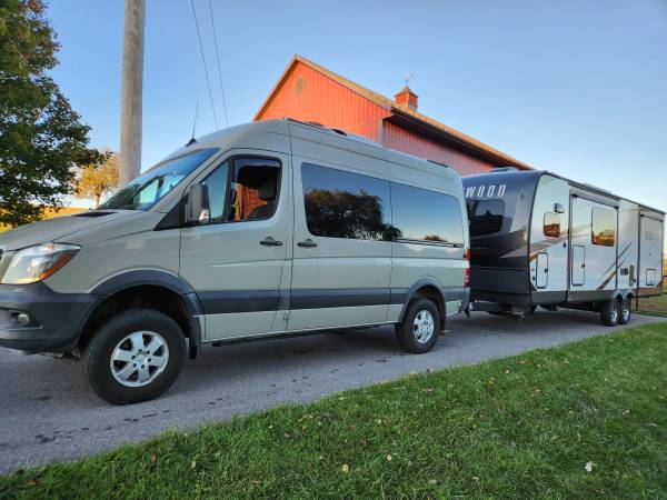 2018 Freightliner Sprinter van, 4x4 , 6 passenger, Leather seats, dual sliding doors, lots of options, has R title due to a tree branch that fell on it. $29,500. also 2025 Forest River, Rockwood camper, like new 200 amp solar panel, 2 Batteries , Sway hitch will be included with the Camper. Great Deal for Only $28,500. buy the package For $55,000.