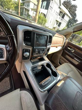 2018 Ram 1500 Laramie Longhorn 5.7 L V8 HEMI. Rear wheel drive/ 4x4. Clean carfax. Looks and drives great! Due to the premium package you could possibly still purchase a warranty. Heated and ventilated leather front seats and heated leather rear seats. Has all weather floor mats with carpet inserts. Ample interior storage. Serious XM compatible. Touchscreen display with Apple CarPlay and Google Android Auto. Harman/kardon 19 Speaker Premium Sound.