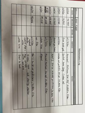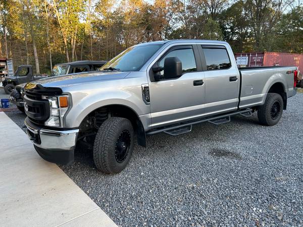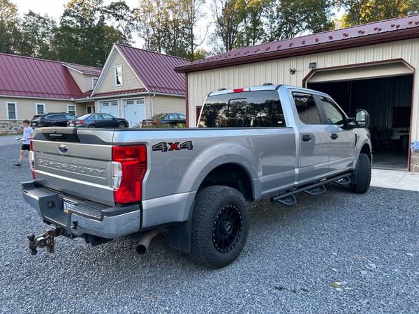 2021 Ford F350 XL, crew cab, long bed. 124k miles, 7.3 V8 gas engine, 10 speed Torqueshift transmission, 4 wheel drive (shifter on dash, auto/manual hubs), 3.73 ELD rear. No accidents. Silver exterior with gray and black interior, rubber floor, cloth seats. Weathertech floor liners installed at new, so rubber floor is like new. Custom seat covers installed at new, so cloth seats are like new. Steering wheel cover used since new, so no wear on steering wheel. 2 very small scratches in paint (see close up photos). No rust at all. No leaks or oozing parts. Runs/drives/shifts perfectly, no strange noises, vibrations, etc. Method HD wheels with 4,500lb rating. N-Fab full length running boards with step to access front of bed. Front/rear aftermarket differential covers. Relatively new Bilstein shocks and steering stabilizer. Brand new tires (Hankook Dynapro XT, I believe). Upgraded front brake rotos and pads. Upfitter switches, factory gooseneck hitch in bed, no dents inside bed, factory bed liner, in-bed lighting, backup camera. Upgraded factory spark plug wires. Dashmat installed at new, so no cracks on dash surface. Sliding rear window. Set of (4) factory steel wheels (powder coated black) with dedicated snow tires included. 1 owner from new, complete service history (see photos), all critical fluids replaced/upgraded on or ahead of schedule, personal vehicle with only 1 driver (me). I personally ordered this truck and drove it off the lot, being careful to break it in properly. Always allowed to warm up/cool down properly. It looses/burns absolutely zero oil between 5k changes. Asking $34k. Text me at (717) 4-nine-zero 29 two four and I’ll get back to you.