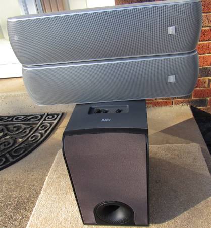 This is a Bowers & Wilkins AS1 Subwoofer + 2 VM1 Bookshelf Speakers in great working condition. The set sounds awesome. The speakers do not have mounting brackets or stands. The cabinets are in good condition with some minor wear. The speakers measure 21 X 3.5 x 5". Price is $140.00 for everything. You can hear it before you buy it. Please email or call Todd at 717-691-78zero6. No calls after 9pm please. See my other listings for more stereo equipment. Search "7806" on Craigslist. IF YOU SEE THIS AD, IT IS STILL AVAILABLE. I DELETE ALL MY POSTINGS AS SOON AS THEY ARE SOLD. Item must be picked up at my residence. I do not deliver. I will not ship this item.