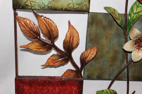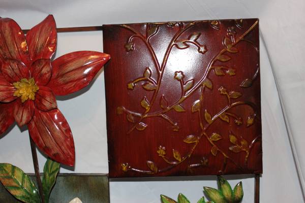 BEAUTIFUL METAL TIN 3D ARTWORK WALL DECOR LARGE - MEASURES 27” x 27” SQUARE CONSISTS OF NINE SMALLER SQUARES, EACH 9” x 9” BURGUNDY WINE, GOLDEN AMBER, SAGE GREEN, CREAM READY TO HANG MOUNTING...