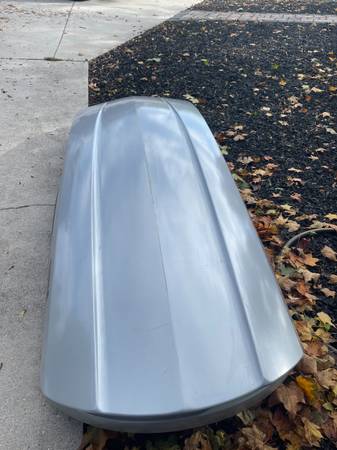 Thule is 17 cu. ft. The measurements are 89" x 34" x 16" and weighs 47 lbs.