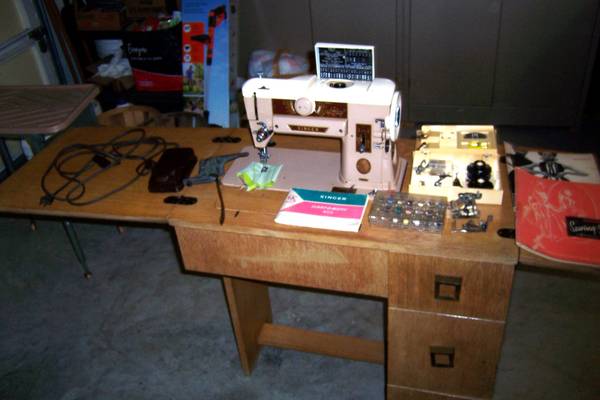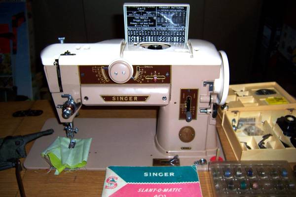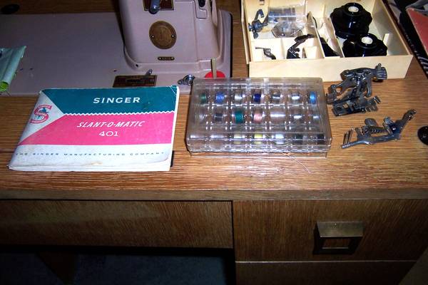 Very nice operating Singer Slant-O-Matic 401A with Cams, in a 3 Drawer Cabinet and accessories. Please see all photos for complete details. Cabinet could use some refinishing or use as is. Asking...