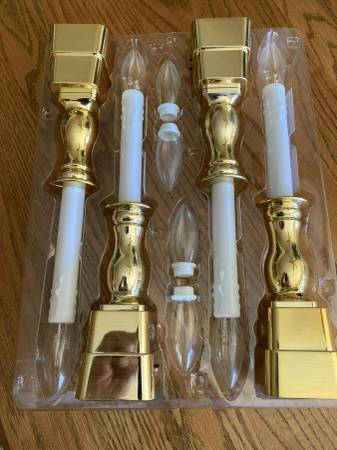 4 Bethlehem Lights Cordless Window Candles Battery Operated Shiny Gold - NEW IN BOX