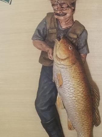 3D picture of a fisherman and his catch nice for recreational room, she shed, or man's world its in great shape no wall space to hang it.