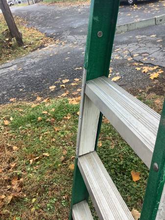 6 ‘ fiberglass ladder. Ladder has been broken and patched. (See the pictures) Sturdy as the day is long. I have another and don’t need this one. Asking $25.00. Call 717-512-401one and ask for Dan.