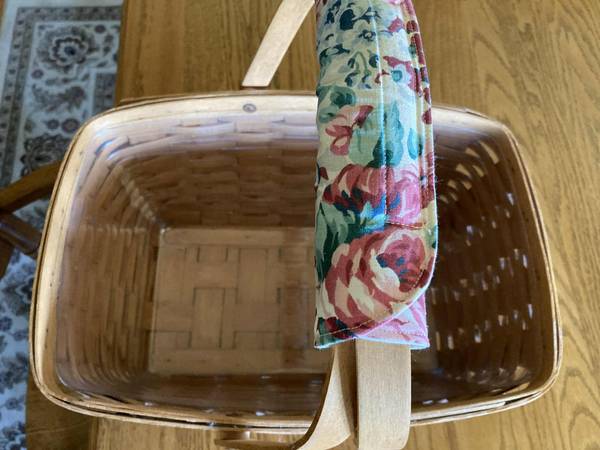 Longaberger 1993 Medium Market Basket with Double Movable Handles, Plastic Protector and Fabric Handle Gripper Condition: Basket: Excellent to very good previously owned condition. 14 ½” Long x 10”...