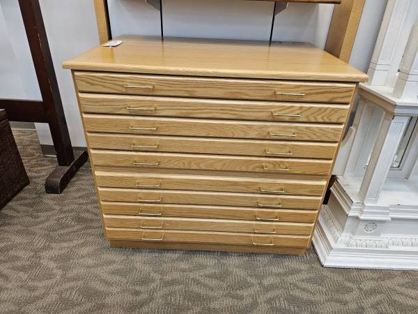 10 Drawer Flat File Cabinet In good condition with normal wear All drawers work as they should It is 2 pieces 42" wide by 28" deep by 37" high $1,295 plus tax Located at Generations of Furniture...