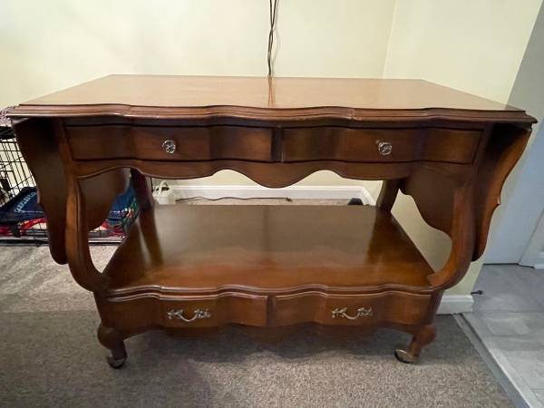 This Buffet is the perfect piece of furniture to have when you want to entertain or simply have a beautiful piece of furniture. The two drawers allow for ample storage. The top drawer has lined divided areas for extra organization. The wheels make it easy for placing it right where you want it to be.