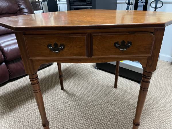 This beautiful corner maple space saving desk is very sturdy and is made of good quality wood. Perfect additional space for anywhere in your home!