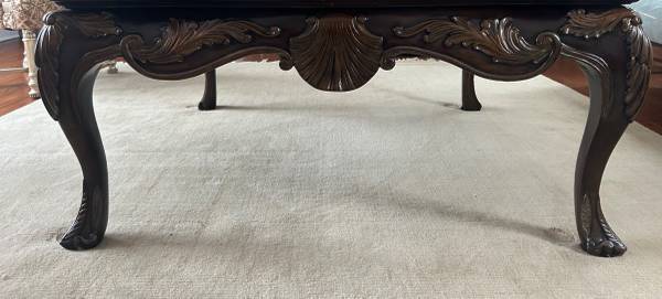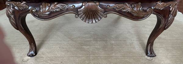 Henredon Carved Wood Cocktail Table with Marble Top