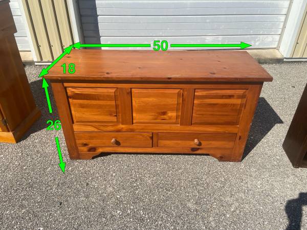 Good condition Solid wood, DIMENSIONS ARE ON PICTURE IN GREEN no holds, price is firm , items are used/ pre-owned, pick up in Lewisberry. please check out my other items,