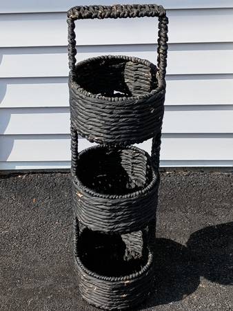 This is for a really neat 3 basket wicker stand. It measures about 12.5" long by 10.5" wide by 36" tall. Please see the attached pictures. Thanks.