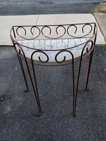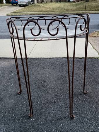 This is for a really nice metal half-moon plant stand with plastic insert. It measures about 26" long by 14" deep by 32" tall. Please see the attached pictures. Thanks.