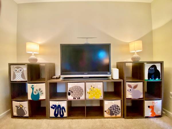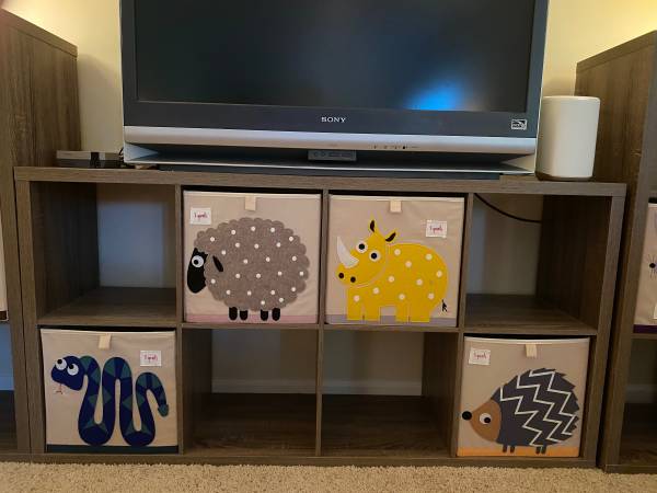 Set of three shelves (10) 3 Sprouts fabric animal storage bins