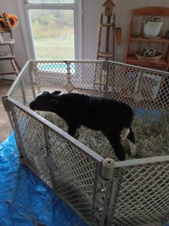 Mini dexter/ hereford heifer. Born Oct 9th. Healthy and happy. She loves to play with her jumbo ball and snuggles anytime you sit down. She will be a wonderful pet and will make for a nice little family milk cow. Christmas is coming. Your chance to get a mini cow pet is here. I won't respond to emails. So if you're interested give me a call and I'll tell you all about this chubby baby we call Diddle. Thanks. Christine.
