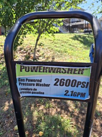 Gas powered pressure washer 2600 PSI, 2.1 GPM. Has been completely serviced. New pump, carburetor, hoses, plug, fillter and fresh oil. No holds. Pickup in Enola. FCFS LOOS Please don't ask if it's...