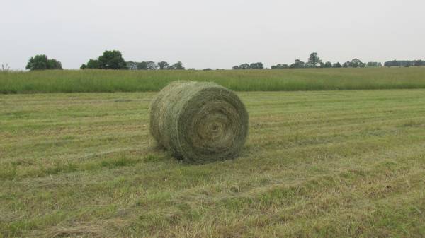 Round bales 4x4 size. First cutting grass hay, made right and stored outside. $30.00 each.