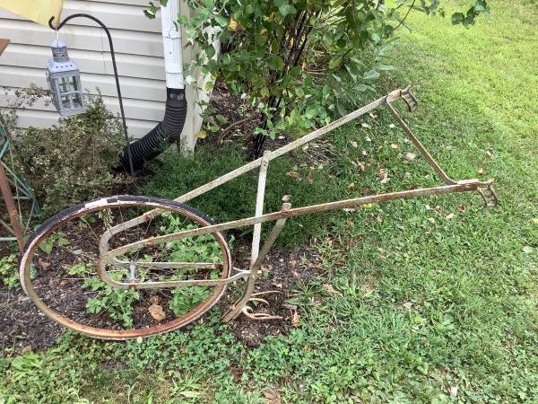 Old school one wheeled cultivator. Metal frame with pistol grip handles. One tine is broken off but,it still does what it is supposed to do. Use it or put it in your flower bed for decoration!! It has a flat tire. Asking $15.00. call 717-512-401one and ask for Dan.