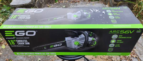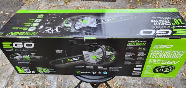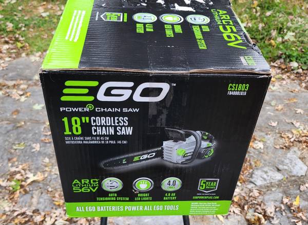 EGO 18" Chain Saw CS1803 Open Box New, unused No battery, no charger Manual included Big Box price $279.99 Charger available $29.00 Cash sale Pick up only