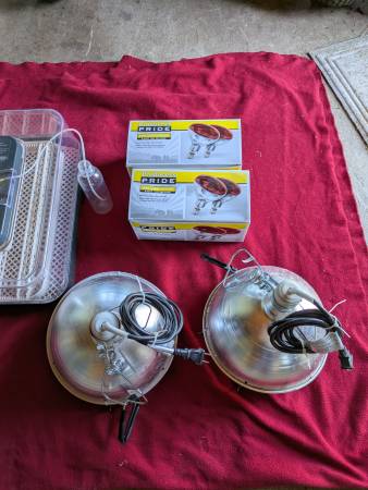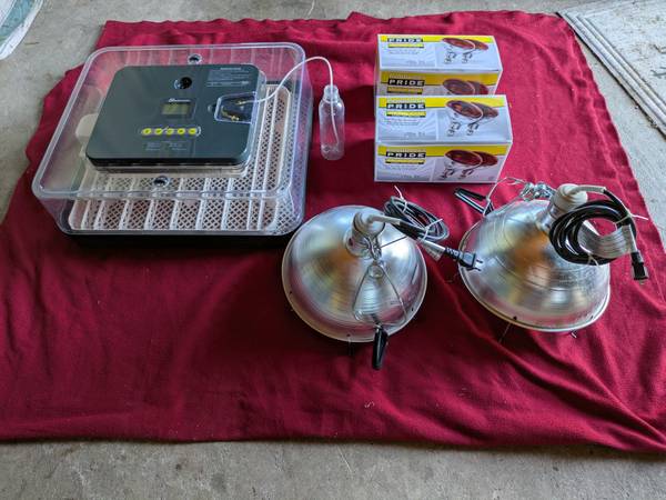 56 egg incubator and 2 heat lamps plus 4 bulbs. Everything is just lightly used. I used the incubator for 3 hatches with a good hatch rate every time. Incubator has automatic egg turner and humidity control. $125 for everything Located in Port Trevorton