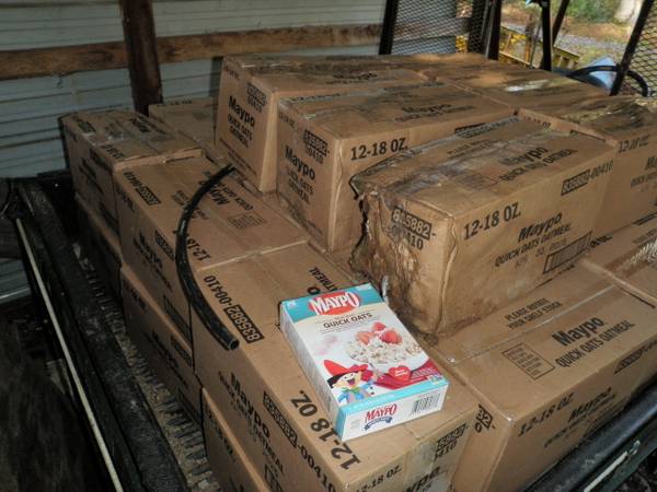 I got 2 pallets (2 ton roughly) of damaged and wet quick oats boxes/cases. Most cases are good but some corner cases got really wet or damaged. Some cases have ants invading as well. These are good for deer and chicken feed. You have to take what I give you, wet or damaged cases...no pick and choosing. Each case weight 14 pounds. I will give anyone 5 boxes for free. If you want more than that or all of it, make an offer once you see the boxes. All meeting will be at 6PM during the weekday in Tower City, at a public location...no exception. Send email with to set up a day or ask any questions.