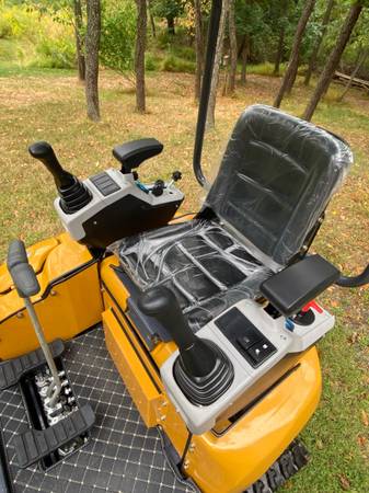 This is a brand new Yanmar diesel excavator with pilot controls and swing boom. This has an inverted boom design with the hydraulic cylinder behind the boom where it is more protected. It has a hydraulic thumb, with an additional set of hydraulic ports for an accessory, such as a post hole auger (which I have and would sell separately, if you’re interested). This is a really nice, smooth running excavator. It weighs about 2,645 lbs. Please call with any questions. 717. Nine seven 7 oll6