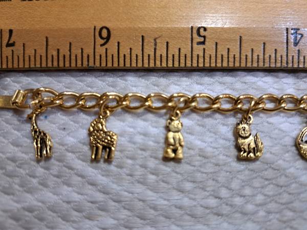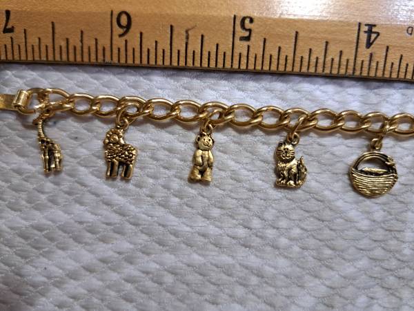 Children's Noah's Ark Charm Bracelet. Gold tone. $10 cash. Pet and smoke free home. $2 cash each. Smoke and pet free home. Pick up in the Rutherford Heights area of Harrisburg, PA. No shipping.