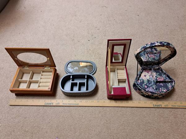 Jewelry Boxes. $4 cash each or all 4 for $15 cash. Pet and smoke free home. Pick up in the Rutherford Heights area of Harrisburg, PA. No shipping.