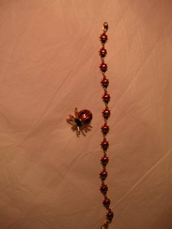 Fashion jewelry ladybug bracelet with pin. Bracelet is 7 1/2" long. Excellent condition. Both pieces: $15.00
