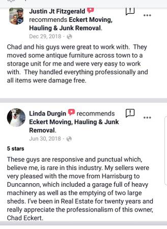 Reply via email or text/call 717-801-5328 or get a Free online quote at www.EckertMoving.com