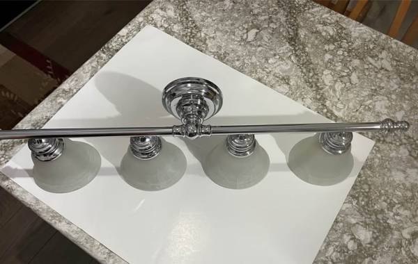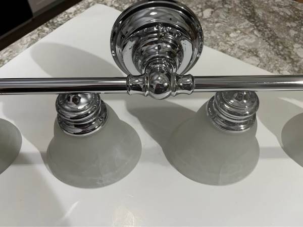 Wall mount light fixture for above a vanity. It takes 4 bulbs. Approximately 34” wide overall. Cash only, pickup in Shermansdale, PA. No holds.