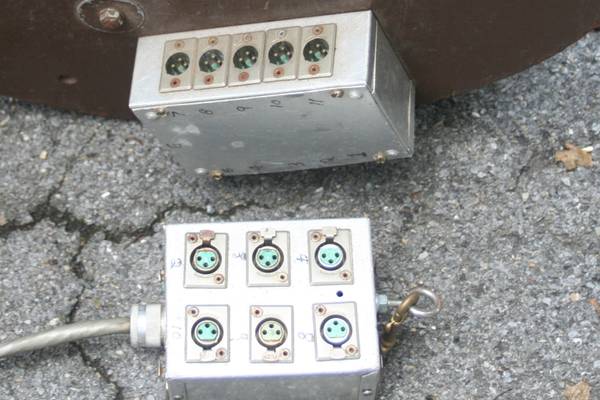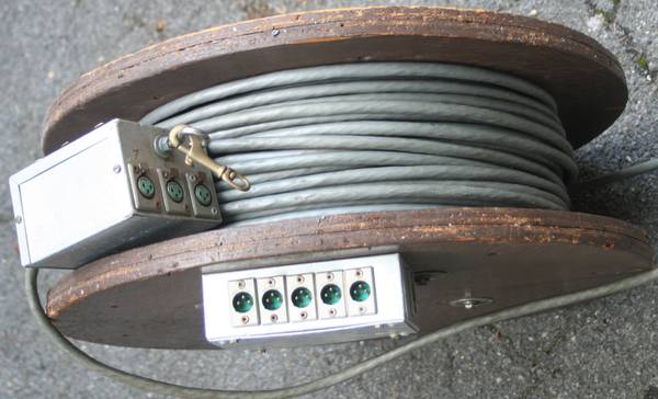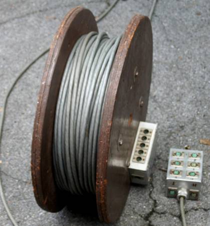 HUGE spool of audio snake cable with 11 channel aluminum boxes on both ends. The spool is 22" in diameter. I rolled out (2nd picture) 90 feet of cable and barely put a dent in the spool. So I assume you have somewhere easily between 200-300+ feet total length. Mogami 8 channel snake cable sells for $3.13 new which at 300 feet would be over $900. Price is $ 150.