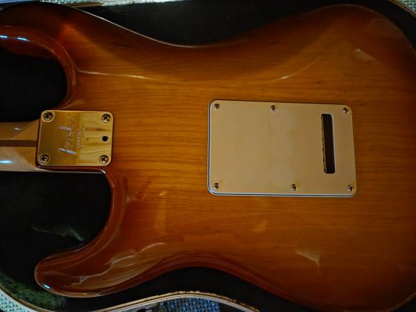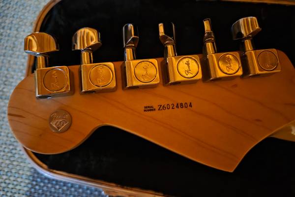 Immaculate condition 2006 60th anniversary Strat. No paint breaks, scratches, dings or marks of any kind. ( see the pics ). 2 hot rails humbuckers and 1 single coil mid pickup. This guitar was never played. The frets are perfect. Just set up this week at Too Loud Sound in Homer City. Includes Fender hard case as shown in the pics. The current price book list it for $1500 to $2000 depending on condition. The asking price is $ 1200. in immaculate condition.